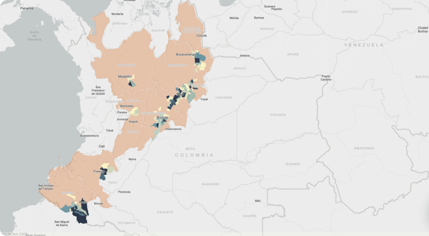 En esta sección encontrará herramientas geográficas clave para la cadena productiva de la papa en Colombia. Desde la FNFP, trabajamos en el desarrollo de visores especializados que permiten visualizar y analizar datos geolocalizados para comprender mejor el subsector. Aquí podrá acceder a herramientas para monitorear plagas y enfermedades, conocer las áreas sembradas a nivel municipal y analizar la calidad de los suelos, con el objetivo de proporcionar información relevante para la gestión técnica y productiva de la papa.